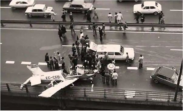 El 14 de diciembre de 1975, un aparato de publicidad aérea con el motor parado tuvo que tomar tierra sobre el Puente La Salve.